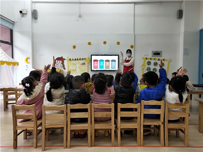 老师组织萌娃们一起观看了垃圾分类的视频,帮助他们认识了垃圾桶颜色的分类,了解哪些是“可回收垃圾”,哪些是“不可回收垃圾”。还有了解垃圾对环境的危害,使萌娃们对垃圾分类有一个基本认识。