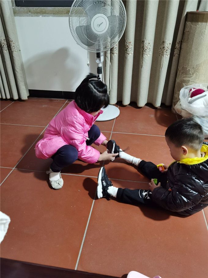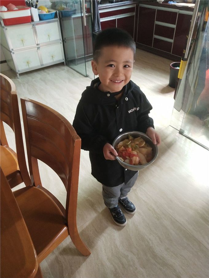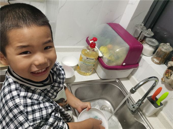“在家我会帮妈妈洗碗。”“我不仅会洗碗,我还会拖地。”“我会帮奶奶浇花。”“我会用我的小手帮弟弟穿袜子。”