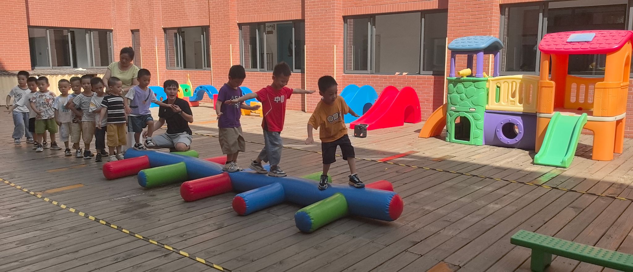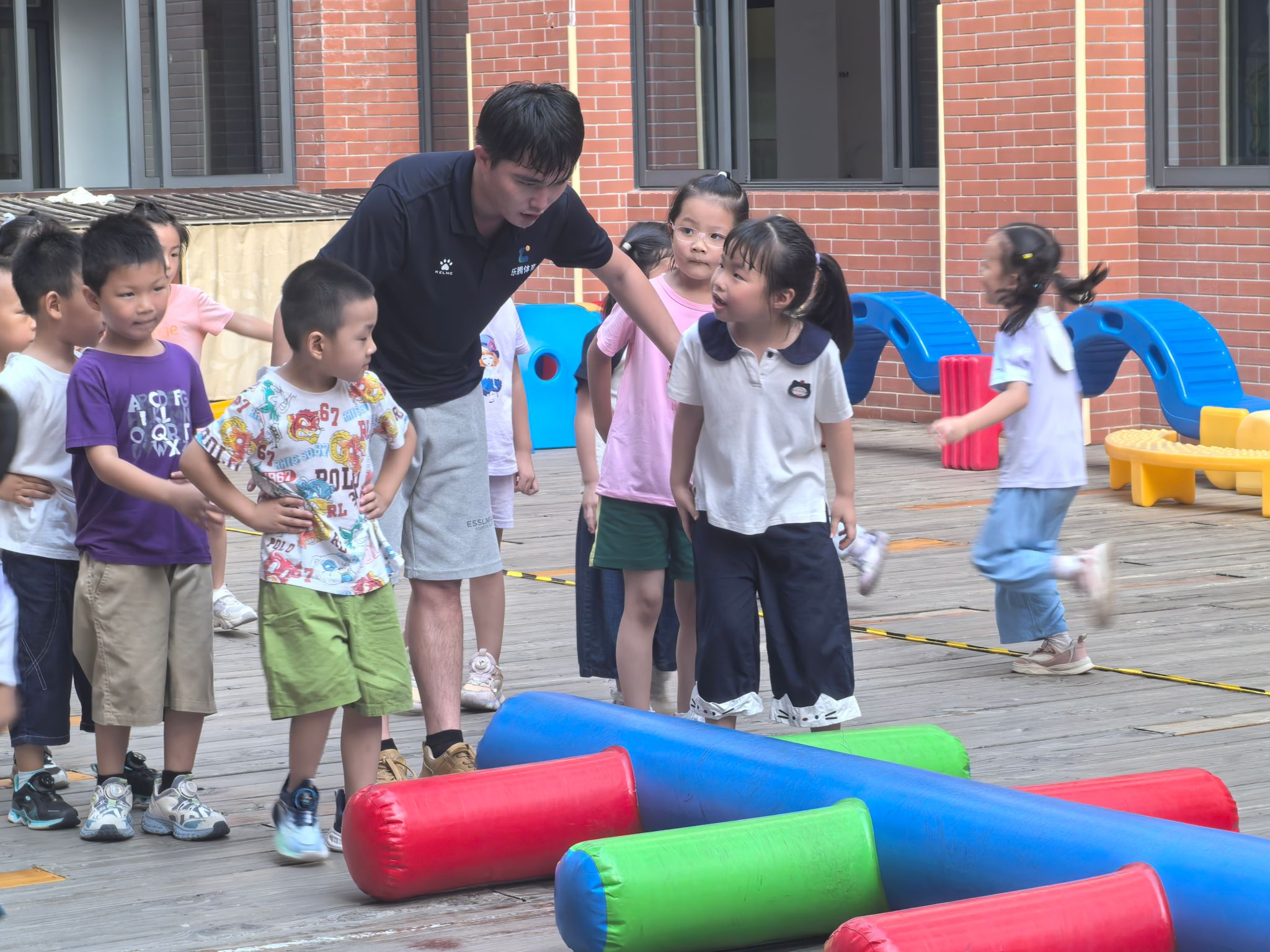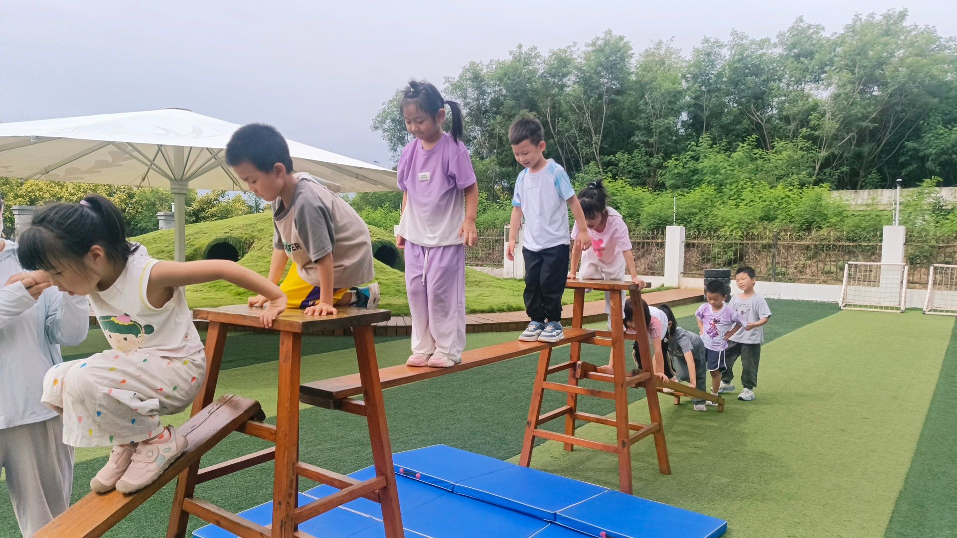 体能体验活动中,宝贝们化身 “运动小达人”。跨栏时,有的宝贝起初有些胆怯,在同伴的加油声中,握紧小拳头勇敢迈过;平衡木上,他们张开双臂像小企鹅一样稳步前行,眼神专注又认真。汗水浸湿了小额头,却挡不住脸上灿烂的笑容,每一次成功突破,都是对自己的小小超越。