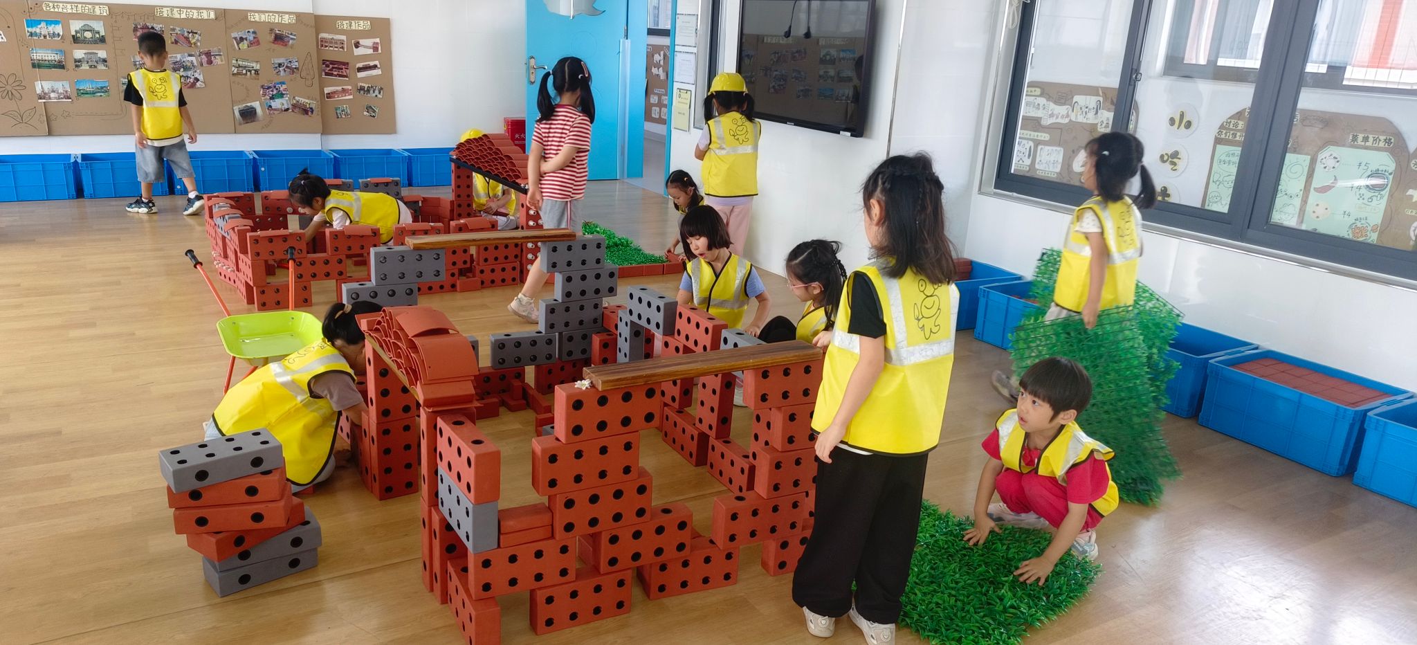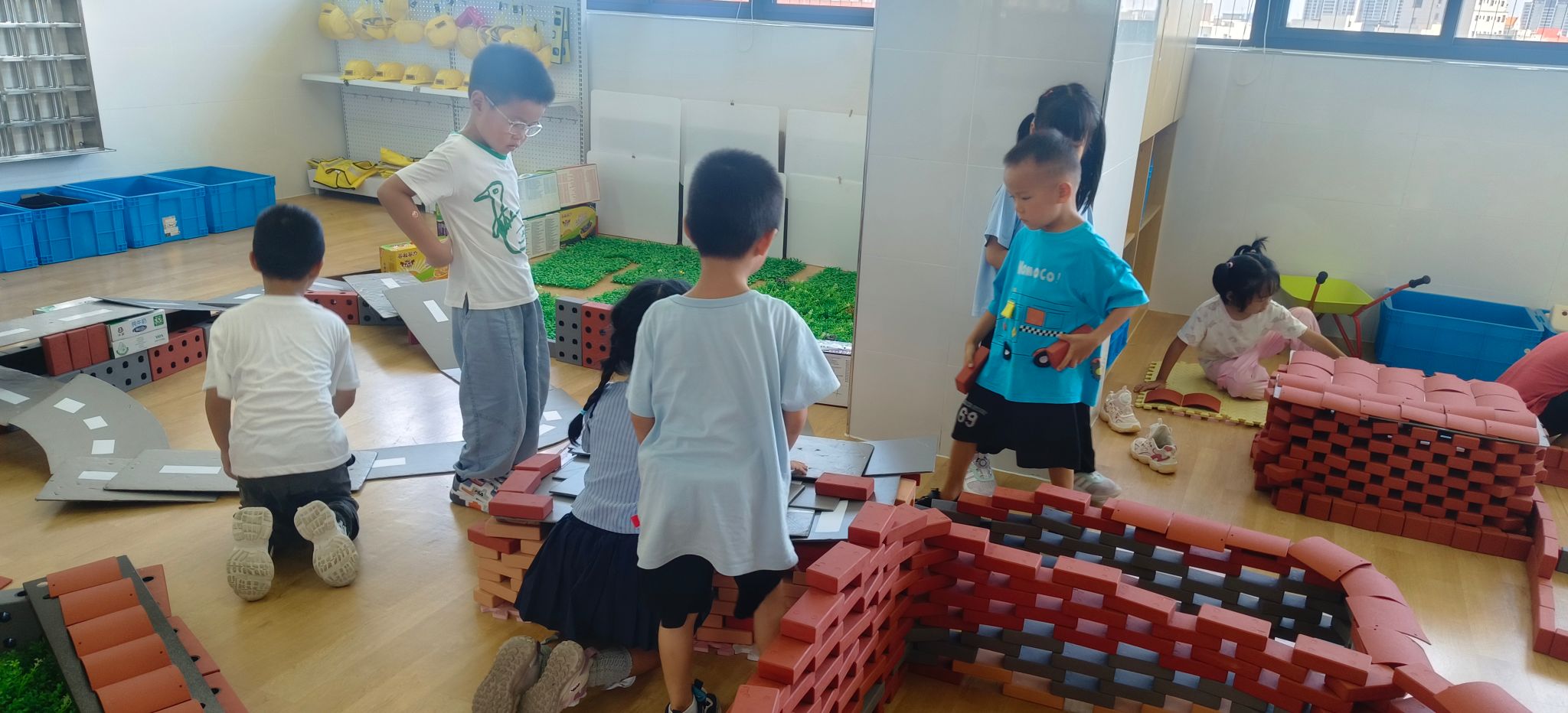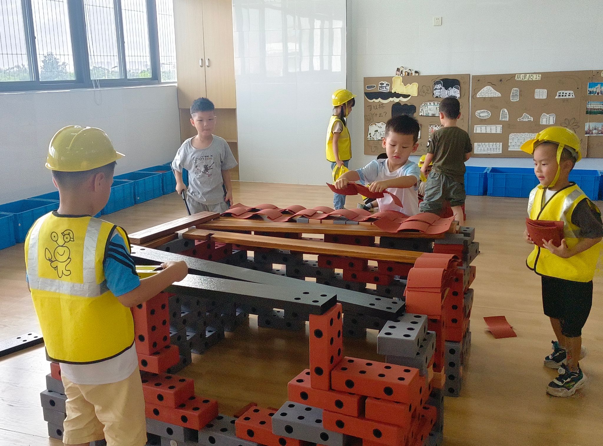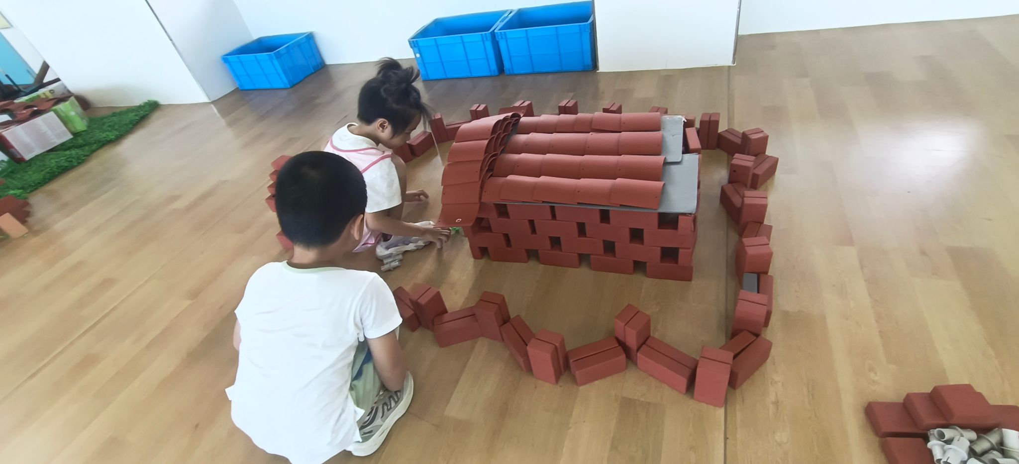 红灰的仿真砖头在孩子们的巧手下“变身”成了带庭院的“梦想小屋”。从设计到搭建,他们在一砖一瓦的协作中,锻炼着空间认知和团队默契,那些充满奇思的建筑作品,是他们对“创造”的最初诠释。