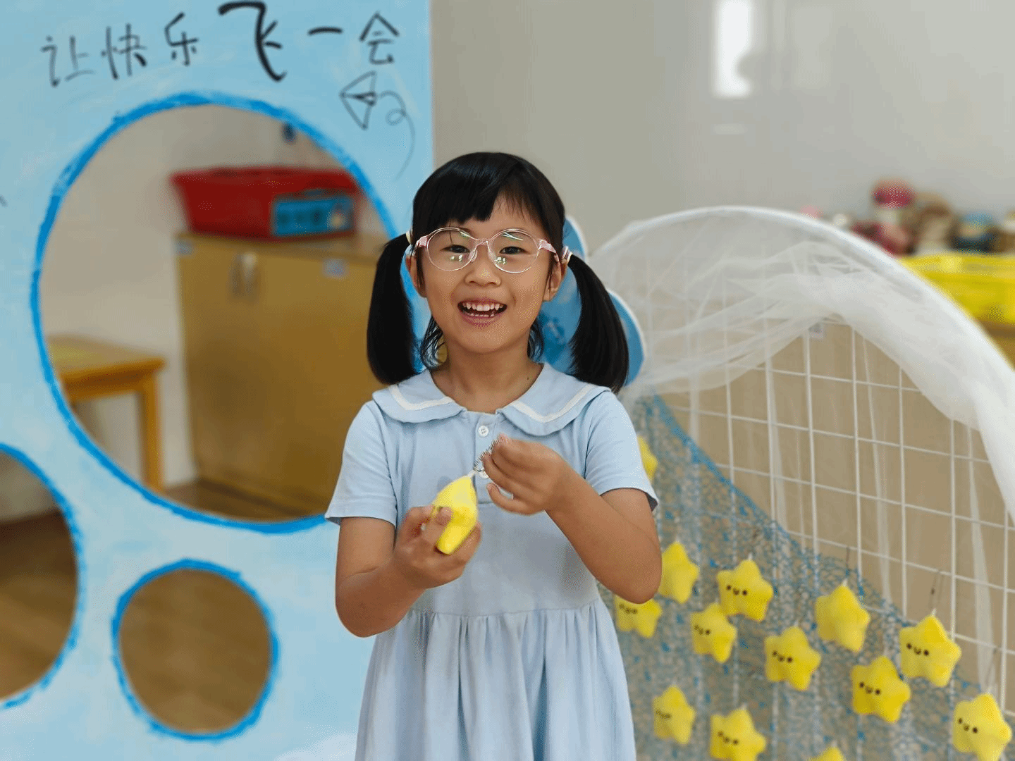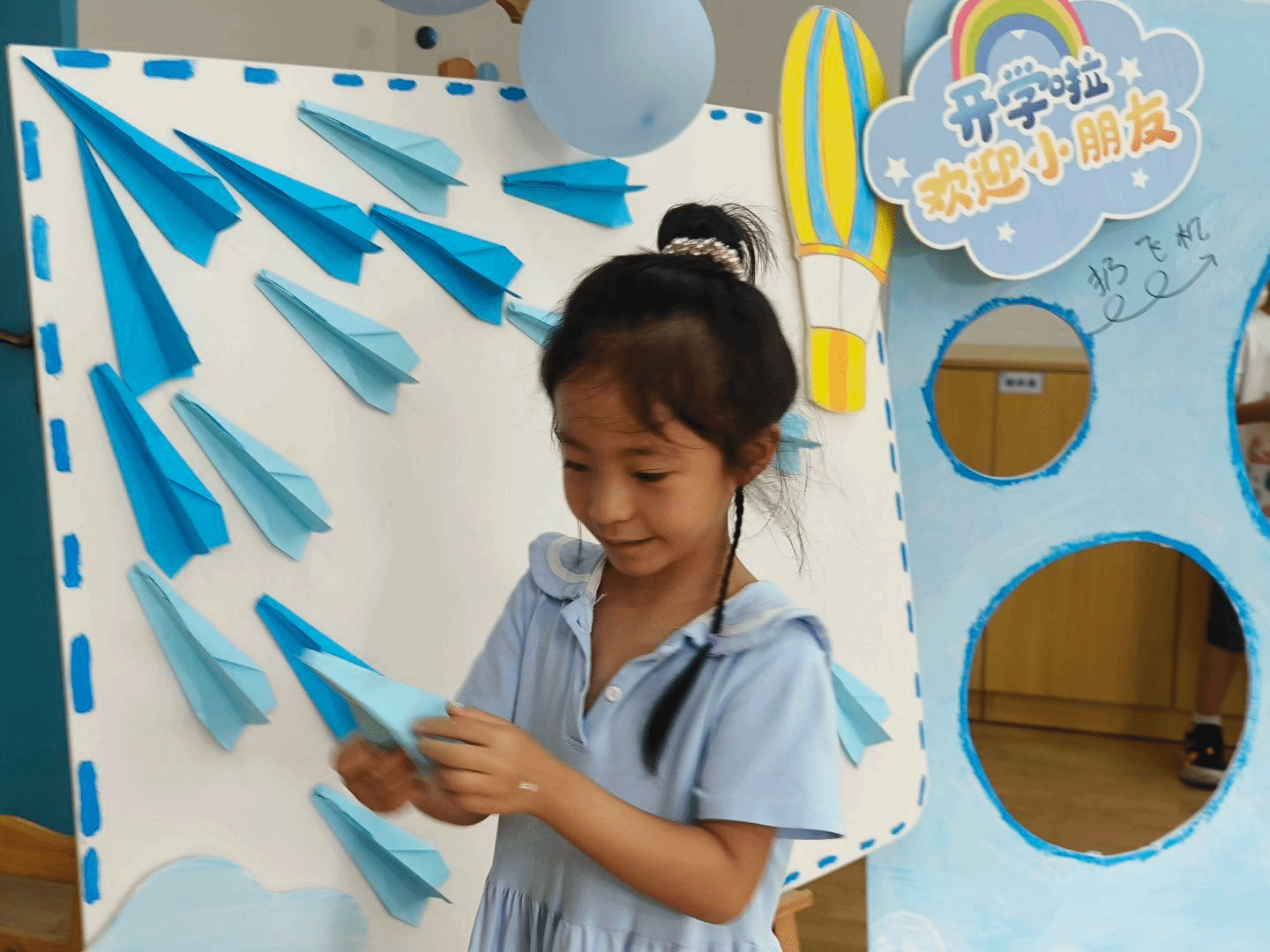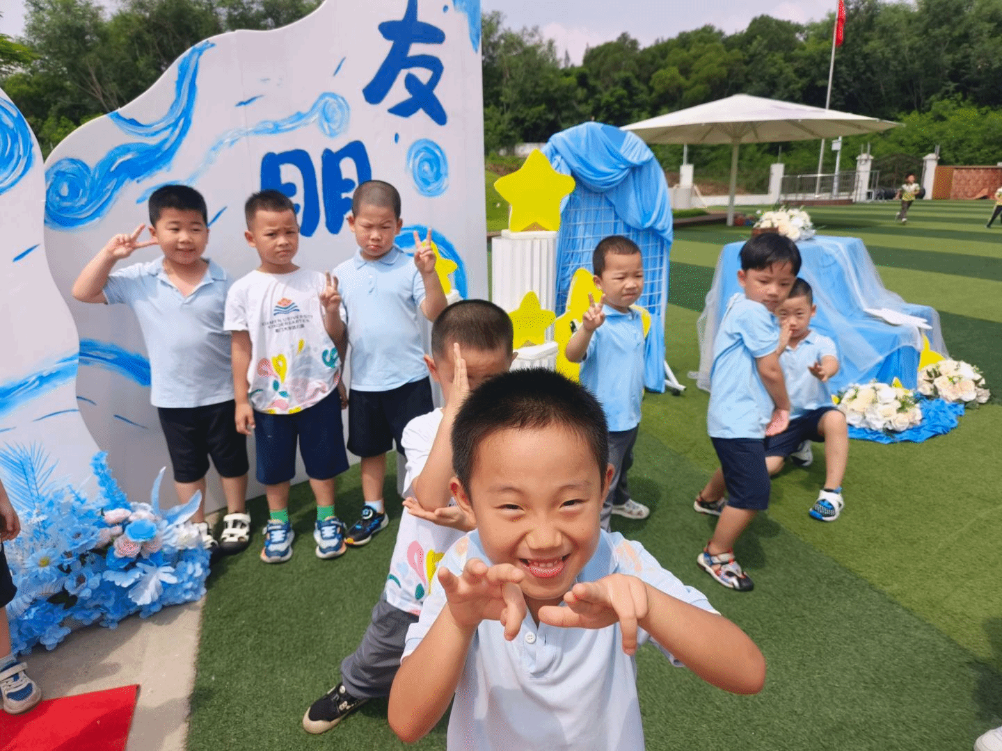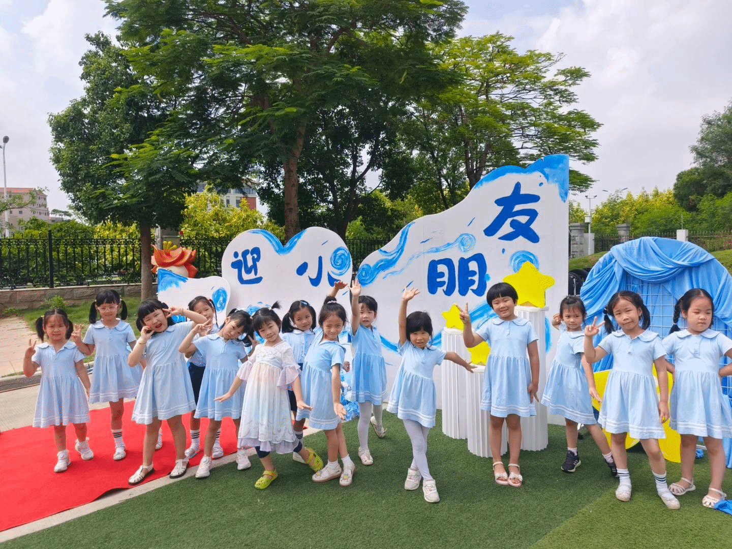 开学第一天,幼儿园的开学仪式成了孩子们的欢乐秀场。孩子们在红地毯和创意布景前摆着可爱的姿势,用最灿烂的笑容开启新学期。这满满的仪式感,是他们对幼儿园生活的“甜蜜记忆”。“让快乐飞一会”的升班仪式中,孩子们笑得格外甜,在充满童趣的布置中,他们自由探索、肆意欢笑,把幼儿园变成了“快乐星球”。