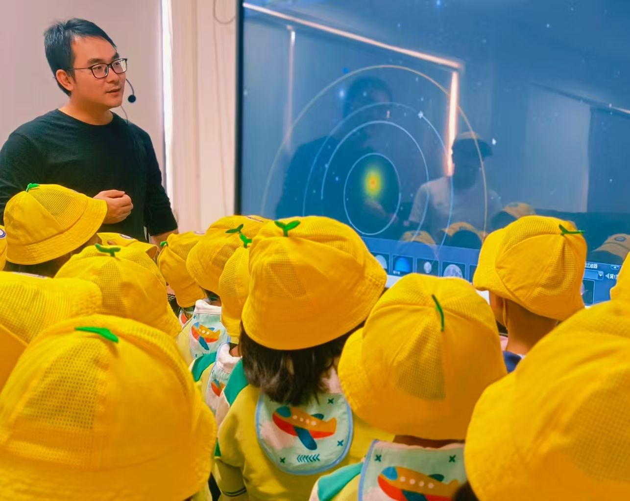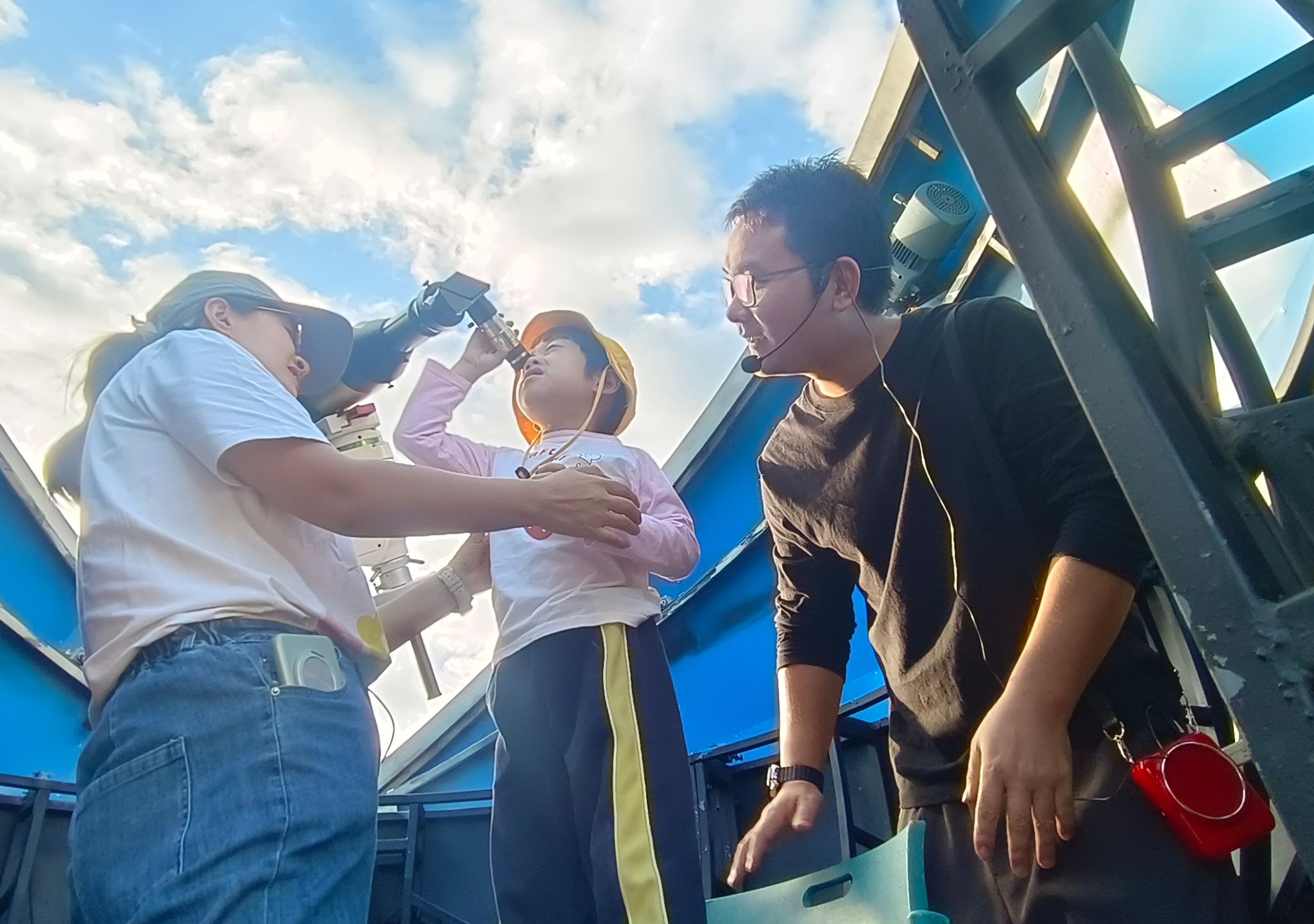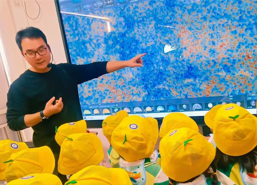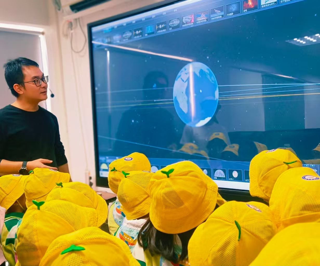 “天文台真神奇!” 带着对宇宙的好奇,孩子们走进天文台,在老师的指引下通过专业观测设备观测太阳。当看到太阳黑子清晰地呈现在屏幕上时,孩子们发出阵阵惊叹,小脸上写满了求知的渴望。老师用生动的动画和趣味问答,讲解行星的运转规律,火星的红色地貌、土星的美丽光环,都让孩子们沉浸在浩瀚宇宙的奥秘中,悄悄在心中种下了探索科学的种子。