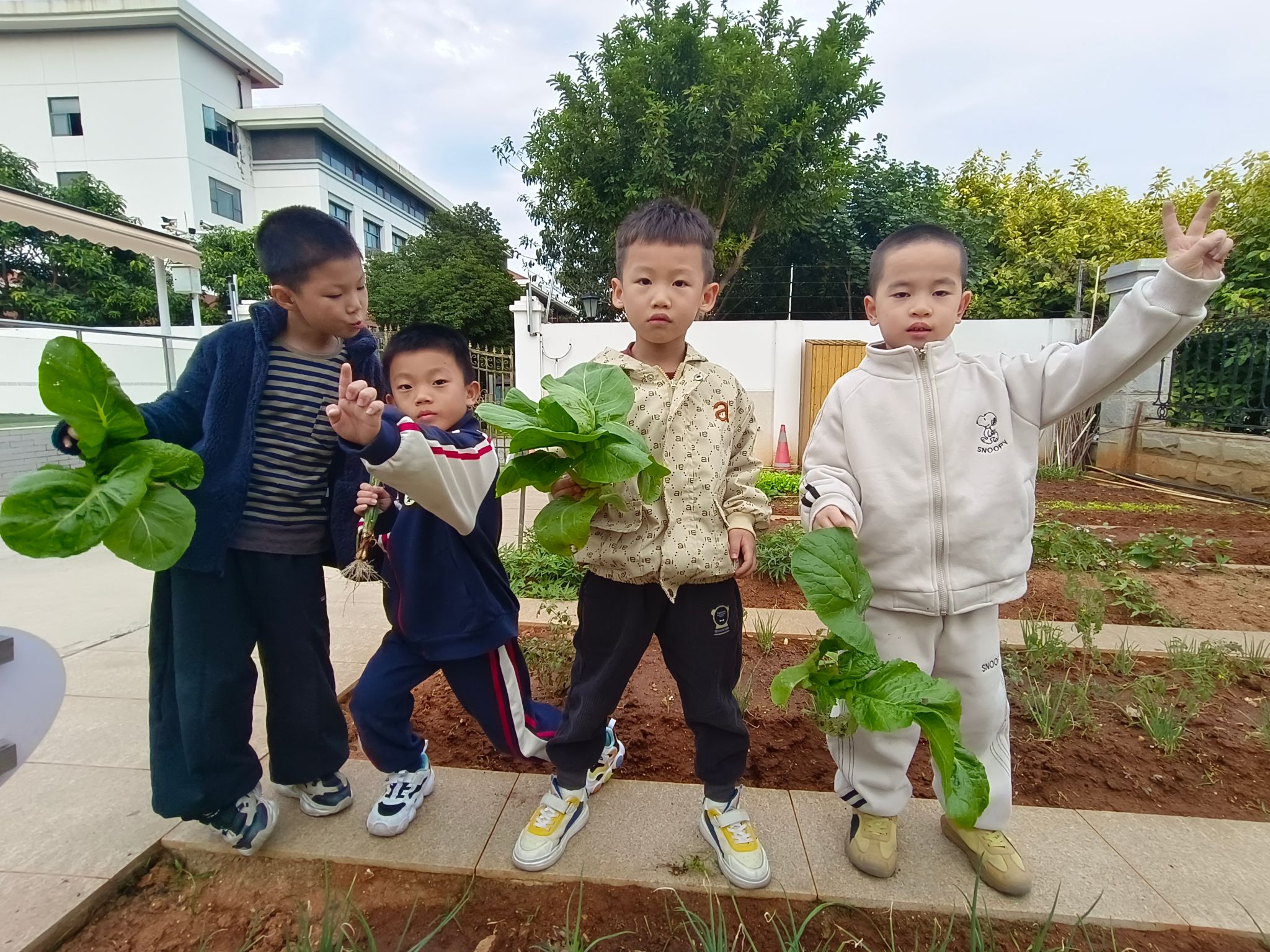 走出天文台,幼儿园的小菜地迎来了丰收时刻。绿油油的青菜、香葱,都是孩子们平日里浇水、除草悉心照料的成果。当亲手收获的蔬菜装满筐,孩子们脸上洋溢着自豪的笑容,在实践中体会到了 “一分耕耘,一分收获” 的道理。