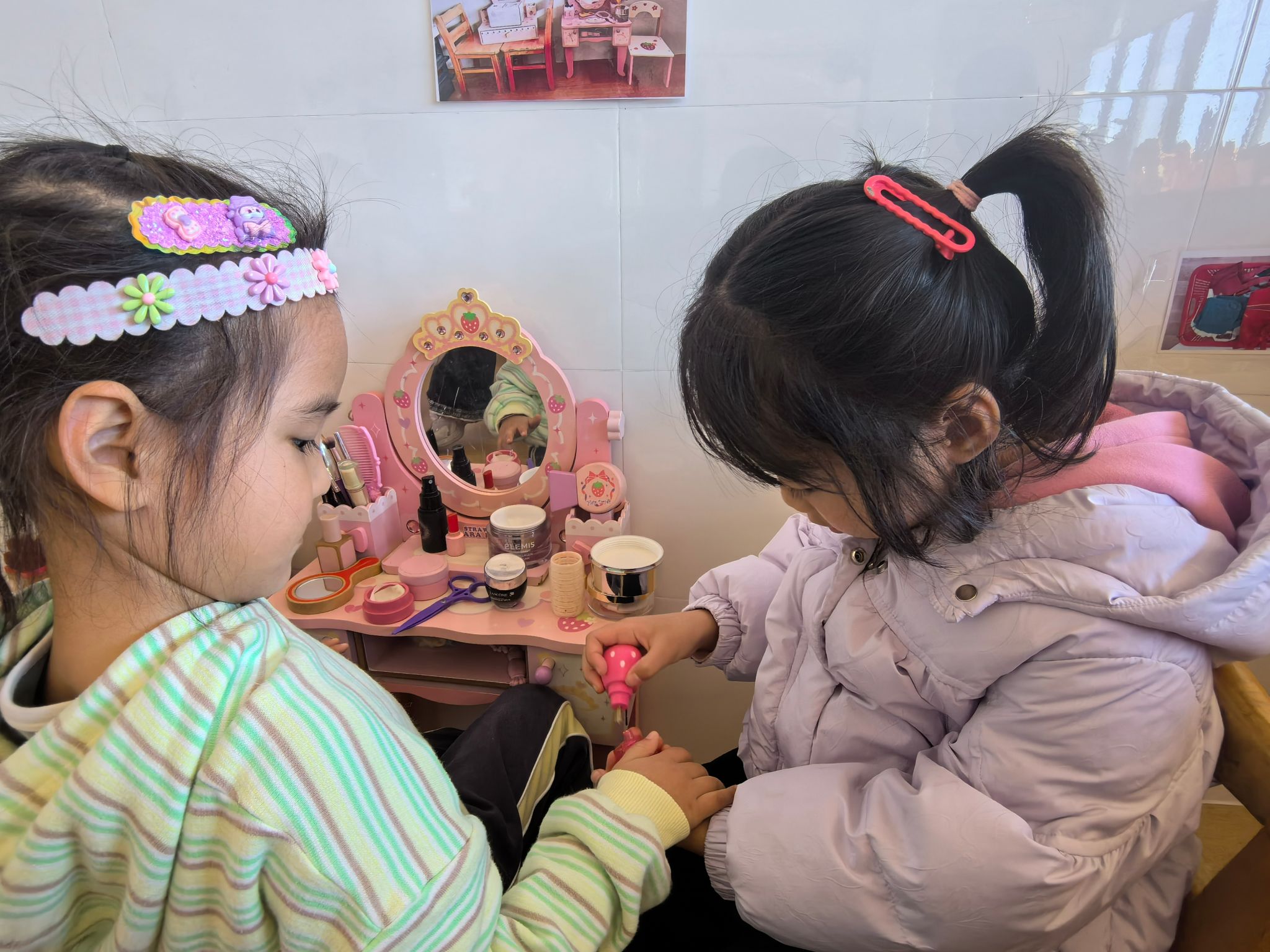 美容院里藏着满满的温柔,小美容师们穿着漂亮的工作服,拿着梳子、发夹、口红等“美容工具”,认真地为顾客服务。他们小心翼翼地为顾客梳着漂亮的发型,搭配上精致的发夹,还会贴心地为顾客“化妆”,一边做一边问“你喜欢这个发型吗?”“这个颜色好看吗?”。顾客们则舒服地坐着,享受着专属服务,脸上洋溢着幸福的笑容。在这里,小美容师们学会了细心与耐心,懂得了尊重他人的喜好,用双手传递着美好与温暖。